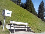 El sendero en cuestión tiene lugares de sombra y de sol: una zona boscosa al costado de la vía por la que circula un trencito de montaña de color rojo, en la que la gente da de comer a ardillas y pájaros; y otra orilla prácticamente sin árboles, sobre la que descansan algunas construcciones típicamente alpinas, varias de ellas de uso turístico. El recorrido tiene cerca de 4 km y como no podía ser de otra manera, cuenta con baños calefaccionados, fuentes para beber agua y lo que es el punto de interés de este blog: bancos para sentarse…